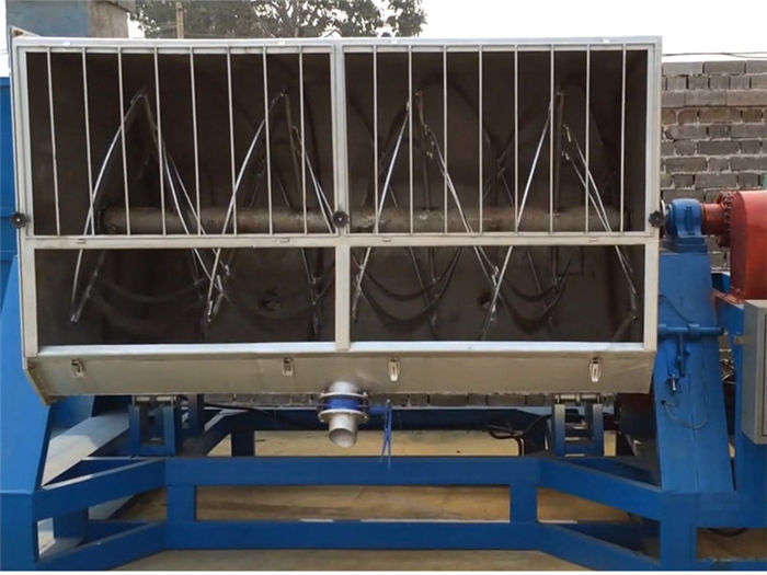 該設備為臥式U型結構,筒體采用碳鋼和不銹鋼(201/301) 材質,內外兩層螺帶交鍇布置,混合逮度快,均勻度高;軸承及攪拌葉片采用碳鋼/不銹鋼錳鋼鑄造材料,槳葉拋光,結實好用;設備的90度翻轉結構,操作時可將殘余物料卸出,清洗工作更方便,降低了勞動強度,提升了生產效率:各部位密封技術好,放料口采用防水蝶閥密封,減少了生產過程中的漏料滴水問題。整套生產線由真石漆攪拌機、控制柜、螺旋提升機(20噸以上設備建議采用斗式提升機)組成,可根據客戶需要,配置合理機型,批次產量最多可達到40T。